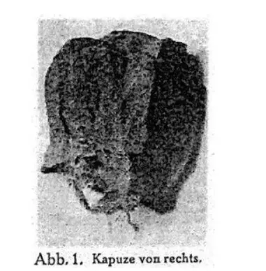 The hat from Bernuthsfeld, dated to 700 AD, was one of the pieces of attire found on the bog body of Bernuthsfeld (see our earlier post ‘Het veenlijk van Bernuthsfeld’). Not much is known from this hat, since it has been lost. From pictures and descriptions is known that it consisted of nine pieces of different fabric sewn together. The hat had an eyelet on its lower right edge, which is thought to have been used to close it. Pictures of the hat show it was worn. The bottom appears to be frayed, suggesting it was torn of from another fabric. It could have originally been attached to the tunic or cape, but it could just as easily have been worn as a standalone piece. The original colour of the hat could not be ascertained due to its long time in the bog.